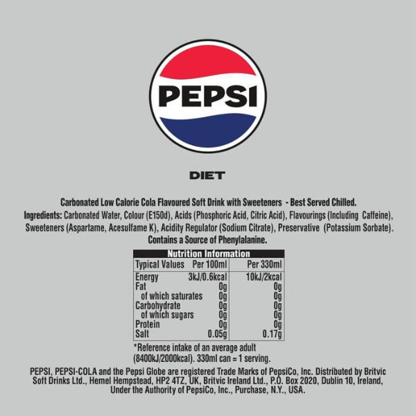 Authentic British Import – Enjoy the genuine flavour of Pepsi Diet Cola, sourced directly from the UK.