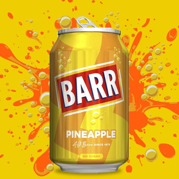 Experience a taste of tropical British refreshment with the sweet and tangy fizz of Barr Sparkling Pineapple — a sugar-free classic with a playful twist.
