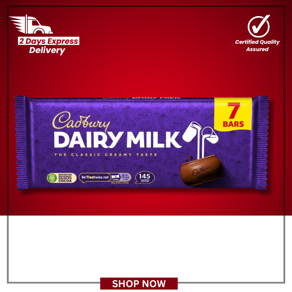 Enjoy a true taste of Britain with this Cadbury Dairy Milk multipack — seven perfectly portioned bars of the nation’s favourite creamy milk chocolate.