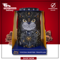 Indulge in the whimsical charm of British chocolate artistry with our Cosmic Blink truffles, featuring buttery chocolate chip cookie pieces wrapped in luxuriously cocoa-dusted chocolate and presented in a collectible Cookie Moon cat tin.