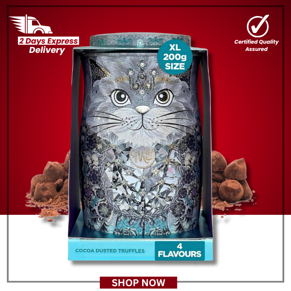 Elevate your chocolate moments with this luxurious four-flavour tin. Order your Diamond Empress Cat Tin today and gift the taste of authentic British indulgence. 🍫✨