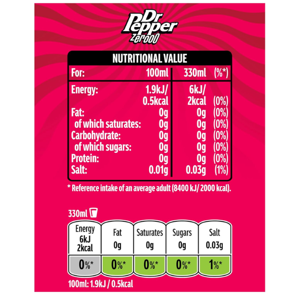 Experience the iconic taste of Dr Pepper — a uniquely British-loved blend of fruity and cola flavours, now with zero sugar.