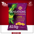 Experience the modern British love for bold, globally inspired flavours with these Walkers Sensations Lime & Coriander Chutney Poppadoms — a refined twist on a classic sharing snack.
