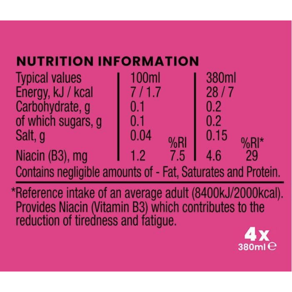 Convenient Multi-Pack – Four 380ml bottles, best enjoyed chilled whenever you need a boost.