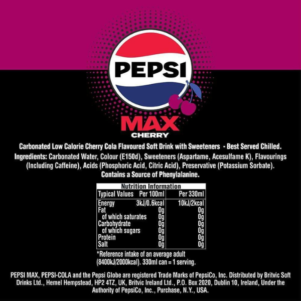 Authentic British Import – Genuine UK Pepsi Max Cherry, enjoyed across Britain.