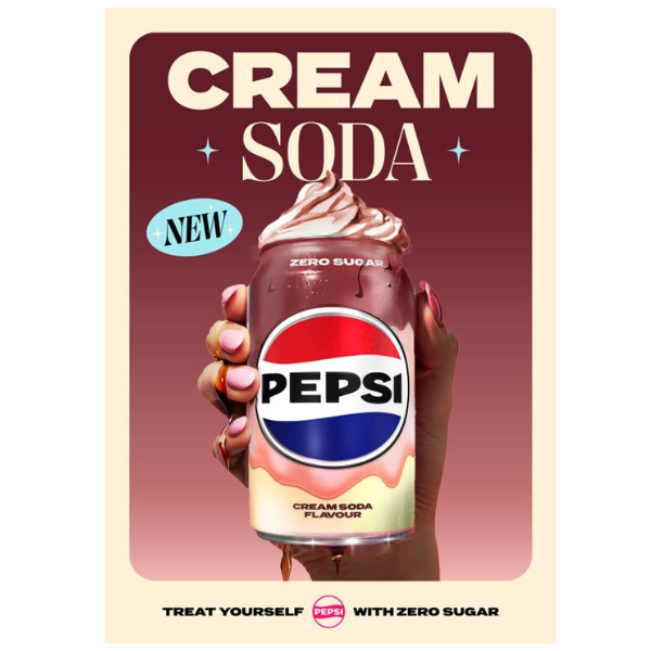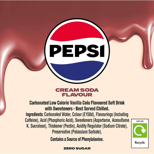 Indulge in the authentic British sweetness of Pepsi Treats Cream Soda, a smooth and refreshing classic with zero sugar and no artificial colours.