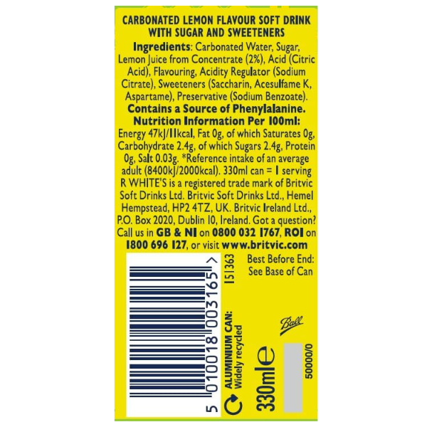 The British Pantry R White’s Classic Lemonade Cans – 24 x 330ml