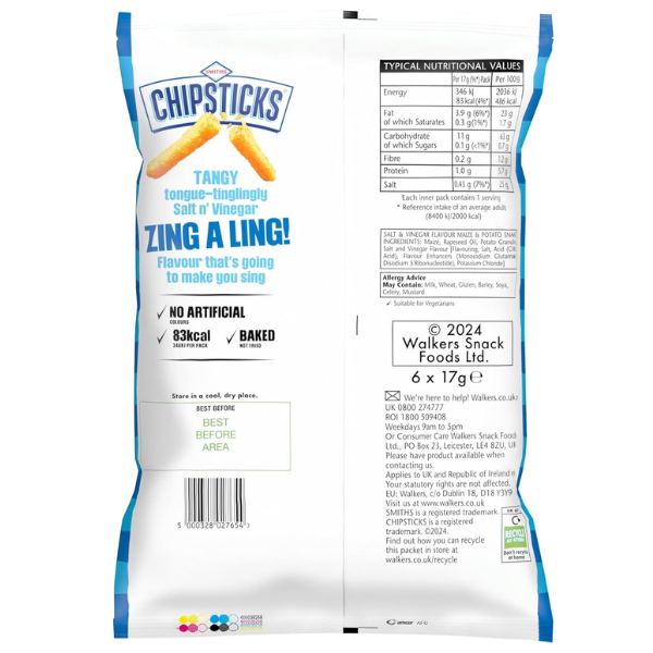 The British Pantry Smiths Chipsticks Salt & Vinegar Crisps Multipack – 6 x 17g (102g)