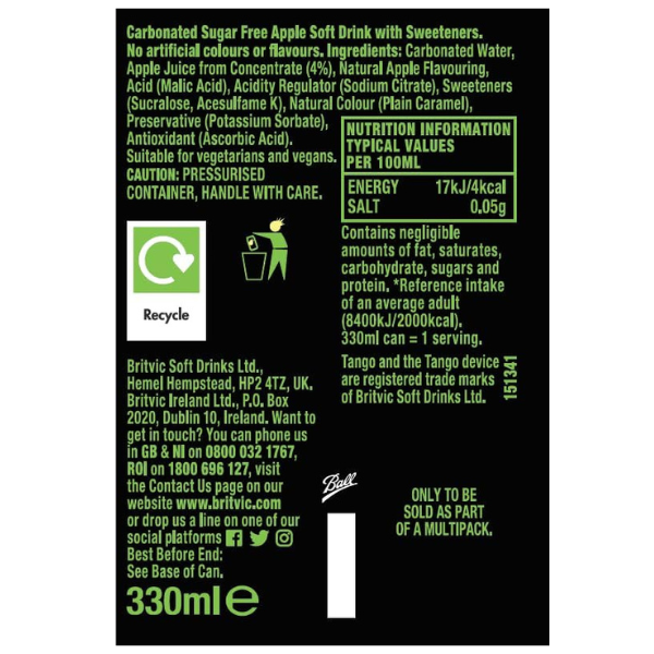 The British Pantry Tango Apple Sugar-Free Sparkling Soft Drink Cans β 8 x 330ml