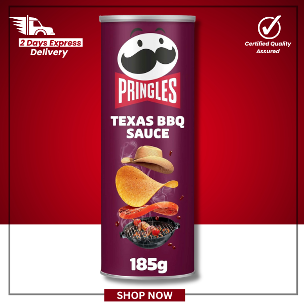 Bring bold British snacking to life with Pringles Texas BBQ Sauce—smoky, tangy, and perfectly crisp in every bite.